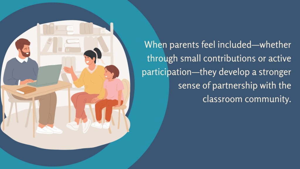 When parents feel included—whether through small contributions or active participation—they develop a stronger sense of partnership with the classroom community.